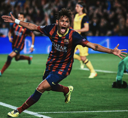2013年6月,巴萨宣布以5700万欧元的转会费与内马尔签约5年 (总费用8620万欧元) 。8月21日,西班牙超级杯首回合,内马尔打入加盟巴萨的处子球,帮助球队在客场1-1战平马竞 。凭借他的客场进球,巴萨夺得西班牙超级杯冠军 。10月26日,西甲第10轮迎来“国家德比”,内马尔完成一传一射,帮助巴萨在主场2-1战胜皇马 。12月11日,欧冠小组赛第6轮,内马尔14分钟内上演帽子戏法,帮助巴萨在主场6-1大胜凯尔特人,并成为足坛首位在欧冠和南美解放者杯上都上演过帽子戏法的球员 。凭借2013年的表现,内马尔在金球奖评选中位列第5名 。