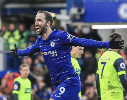 2019年1月,伊瓜因被尤文图斯召回,但之后又被租借至切尔西足球俱乐部 。1月27日,在2018-19赛季英格兰足总杯第4轮切尔西3-0战胜谢菲尔德星期三足球俱乐部的比赛中,伊瓜因获得首发登场,完成个人在英格兰足总杯的处子秀 。1月30日,在2018-19赛季英超联赛第24轮切尔西0-4不敌AFC伯恩茅斯足球俱乐部的比赛中,伊瓜因首发登场,完成个人在英超联赛的处子秀 。2月2日,在2018-19赛季英超联赛第25轮切尔西5-0战胜哈德斯菲尔德镇足球俱乐部的比赛中,伊瓜因分别在第16分钟和69分钟攻入两球完成“梅开二度”,这是伊瓜因在英超联赛的首个“梅开二度” 。2月24日,在2018-19赛季英格兰联盟杯决赛切尔西3-4不敌曼彻斯特城足球俱乐部的比赛中,伊瓜因在第95分钟替补威廉·博尔热斯·达·席尔瓦登场,完成个人在英格兰联盟杯的处子秀 。