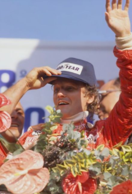 尼基·劳达于1974年加盟法拉利。 同年,尼基·劳达代表法拉利在处子赛季中获得第四名,同时他还在西班牙大奖赛获得了自己的首个分站赛冠军。1975年他在摩纳哥、比利时、瑞典、法国和美国都取得了胜利,获得生涯首座世界冠军。到1976年夏季,尼基·劳达又赢得了五场比赛。 但他在纽博格林进行的德国大奖赛中遭遇严重事故,赛车撞到防护栏后弹回赛道中间起火,在被身后的布雷特·朗杰二次撞击后,尼基·劳达被困在其中无法脱身,在后续赶到的多位车手帮助下,尼基·劳达才被救出。在医院中,劳达的身体被检查出头部与手腕一到三级的烧伤,多处骨折,肺部因吸入有毒气体而灼伤。但即使如此,他在两站比赛后重返赛场,最后仅是以1分之差败给詹姆斯·亨特屈居年度亚军。