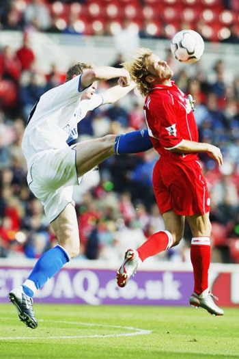 之后,门迭塔辗转到了英超的米德尔斯堡,伴随球队经历了0:7负于枪手的惨败,也有大比分战胜红魔和蓝军的喜悦,06年随球队打进了欧洲联盟杯决赛,并效力至今。