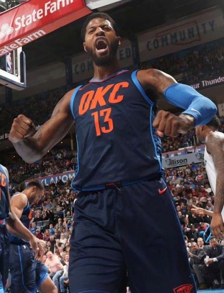 2017年11月11日,雷霆主场120-111战胜快船,保罗·乔治出场41分钟,得到42分、9个篮板和7次助攻,职业生涯第6次单场得分40+,并成为雷霆队自2008年搬迁至俄克拉荷马城以来第4位单场得分40+的球员。