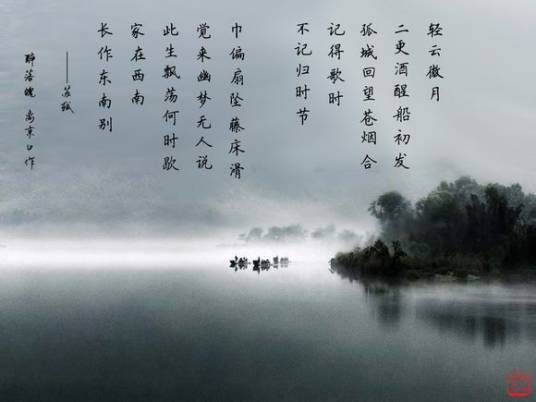 苏轼《醉落魄·轻云微月》轻云微月,二更酒醒船初发。 孤城回望苍烟合。记得歌时,不记归时节。巾偏扇坠藤床滑,觉来幽梦无人说。 此生飘荡何时歇。家在西南,长作东南别。4.