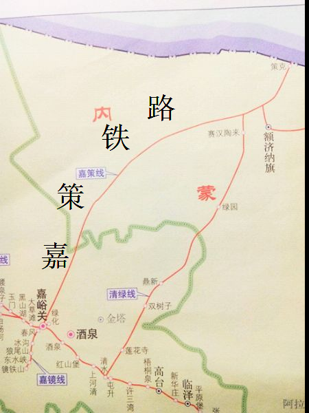 嘉策铁路与临策铁路连接以化解临策铁路在煤价低迷背景下运量困难的形势,乘坐该铁路时也可看到嘉峪关的万里长城和关外大漠。