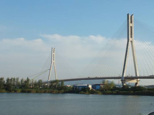 南京八卦洲长江大桥,简称八卦洲大桥,原称南京长江第二大桥 ,是中国江苏省南京市境内一座跨长江斜拉桥,是中国国家“九五”重点建设项目 ,为南京-洛阳高速公路(国家高速G36)的重要组成部分 ,建成时是世界第三大斜拉桥,有“中华第一斜拉桥”的美誉 。