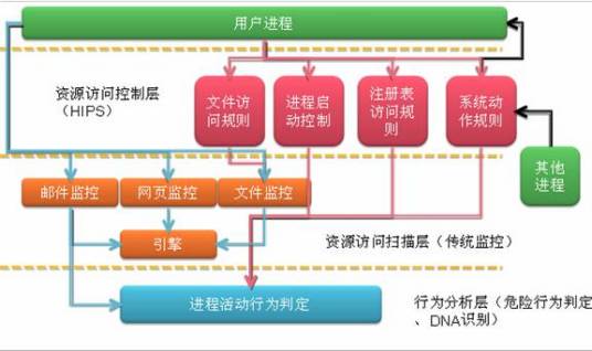 许多宣称具有主动防御功能的安全软件,都只完成了三层架构中的“程序活动行为分析”或“资源访问规则控制”。