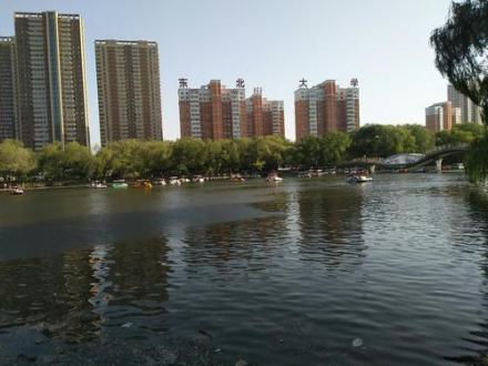 南湖公园位于沈阳市和平区南部,北邻文化路,东、南两侧与东北大学相邻,蜿延如带的南运河横贯其间,形成条形的水面,将公园分成南、北景区。公园现有面积53.8万平方米,其中水面为13.4万平方米。