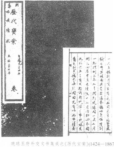 《历代宝案》是琉球国首里王府的外交文件,后经琉球王室委由当地学者加以整编编纂而成,是记载琉球国与周边国家来往文书的历代宝案。此书以汉字、汉文书写,共分为三大部,前半段共记载14世纪至17世纪期间琉球王国与中国以及其周边国家如日本、暹罗(现在的泰国)、土耳其、马六甲王国、苏门答腊、爪哇等国的外交贸易往来书信。17世纪初,因受日本幕府控制,该往来外交文件渐少,不过该书仍继续编纂汇集后半部,直至该王国覆灭为止。