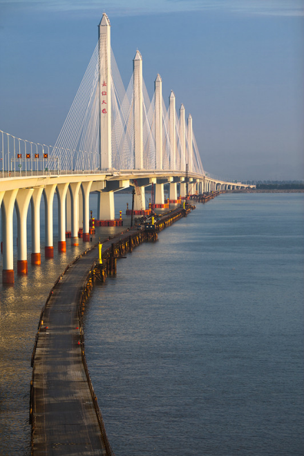 2009年7月30日,嘉绍大桥的栈桥工程完工。