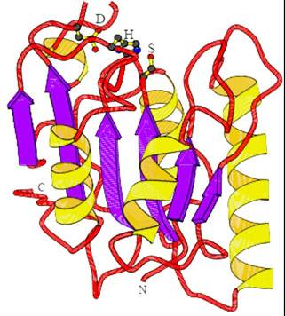 来源不同的脂肪酶,在氨基酸序列上可能存在较大差异,但其三级结构却非常相似。脂肪酶的活性部位残基由丝氨酸、天冬氨酸、组氨酸组成,属于丝氨酸蛋白酶类。脂肪酶的催化部位埋在分子中,表面被相对疏水的氨基酸残基形成的螺旋盖状结构覆盖(又称“盖子”),对三联体催化部位起保护作用。“盖子”中的α-螺旋的双亲性会影响脂肪酶与底物在油-水界面的结合能力,其双亲性减弱将导致脂肪酶活性的降低。“盖子”的外表面相对亲水,而面向内部的内表面则相对疏水。由于脂肪酶与油-水界面的缔合作用,导致“盖子”张开,活性部位暴露,使底物与脂肪酶结合能力增强,底物较容易地进入疏水性的通道而与活性部位结合生成酶-底物复合物。界面活化现象可提高催化部位附近的疏水性,导致α-螺旋再定向,从而暴露出催化部位;界面的存在还可以使酶形成不完全的水化层,这有利于疏水性底物的脂肪族侧链折叠到酶分子表面,使酶催化易于进行 。