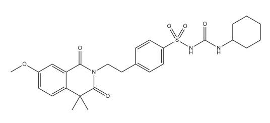 格列喹酮,是一种有机化合物,化学式为C27H33N3O6S,是一种降血糖药,用于非胰岛素依赖型糖尿病的治疗。