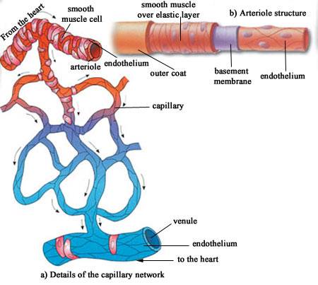 微动脉由毛细动脉分出,参与微循环的构成。其内膜无内弹性膜,中膜亦仅由1~2层平滑肌细胞组成,外膜甚薄。此类动脉位于微循环的起始部,对调节微循环血量有重要意义。