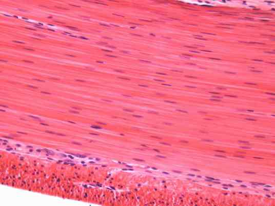 平滑肌分布于一些内脏器官,在器官内多平行排列,组成平滑肌束或层构成管道或有腔器官的壁,如胃肠道、呼吸道、泌尿生殖道、血管和淋巴管的肌层,以及存在于某些实质器官的被膜内。平滑肌细胞具有2个基本特征:缺乏骨骼肌和心肌细胞所具有的横纹(这是平滑肌名称的由来) 。