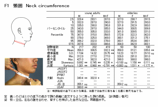 颈围Ⅰ(neck girthⅠ,M63):在喉结下方的颈部水平围长,用软尺测量。