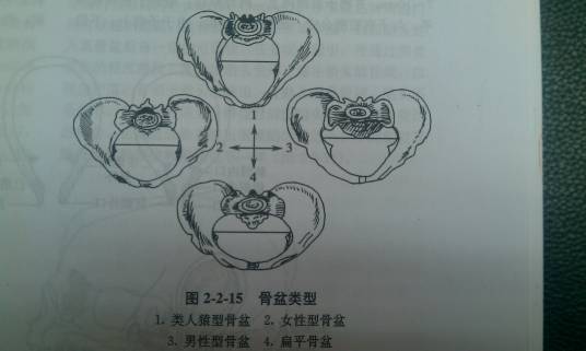 骨盆类型有时可对分娩过程产生重大影响。根据骨盆X线摄影的骨盆入口形态,可将骨盆分为女性型、男性型、类人猿型和扁平型四种。