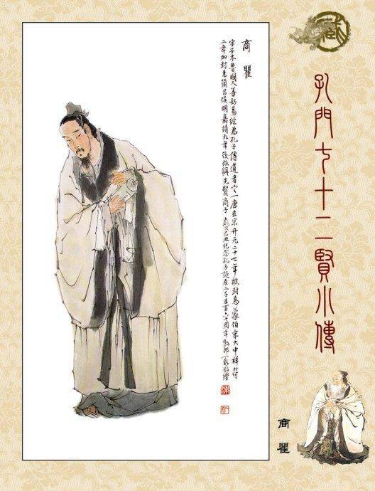 他从孔子专门学《易》。孔子的教育原则之一是“因材施教”,自然就拿《易》 理来教他,因而商瞿对《易》理研究得很深,卜易灵验如神。