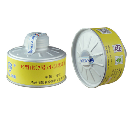 7号(E型)小型滤毒罐 | 铝 | 210克 | 黄色 | 酸性气体和蒸汽:二氧化硫、氯气、硫化氢、氮的氧化物、光气、磷和含氯有机农药 | 综合防毒 |