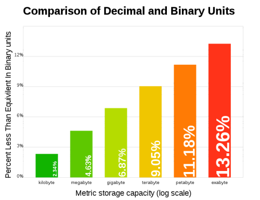 图片说明:之间的百分比小数点和单位的前缀二进制解释差异的增长不断增加存储容量。