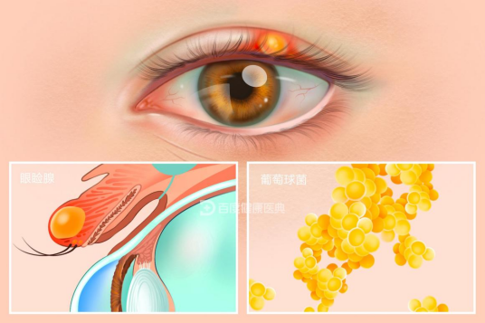 大多数麦粒肿(即睑腺炎)是由葡萄球菌感染引起的,其中金黄色葡萄球菌引起的感染最为常见。由睑板腺开口阻塞等因素引起的无菌性炎症,可导致继发感染,最终进展为内睑腺炎。