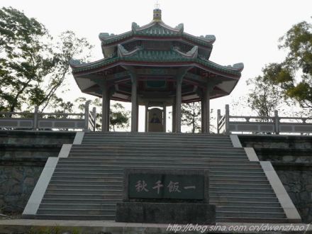 方饭亭 | 方饭亭,位于海丰县城北面的五坡岭上,坐西北向东南,占地960平方米。前面分五层34级台阶,台阶上面是一幅长20米、宽13米的月台,中心建一重檐攒尖顶,通高9米。亭内后侧再置一庑殿顶小石亭,高3.9米,内竖一碑,高2.7米,宽0.9米,刻文天祥画像。该亭为纪念南宋民族英雄文天祥当年方饭五坡岭时不幸被捕而建,故取名“方饭亭”。 |