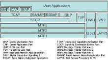 电话交换网络中,常用的信令如右图所示。图中MAP,CAP,RANAP,BSSAP为移动通信系统使用的信令;ISUP,TUP,INAP为固定网使用的信令;DSS1和V5.2为接入网使用的信令。