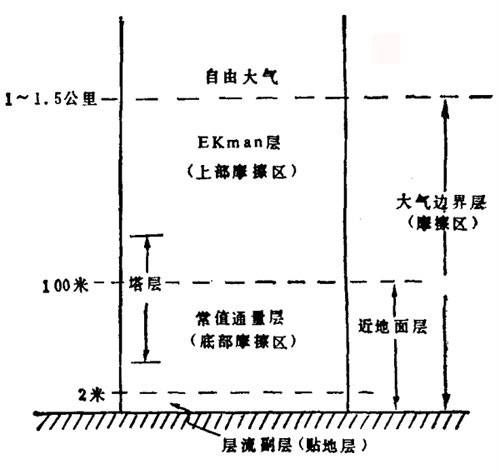 ②湍流结构:在大气边界层中,大气流动具有很大的随机性,基本上是湍流流动,其结构可用湍流度、雷诺应力、相关函数和频谱(见湍流理论)等表示,气流湍流度可达20%。