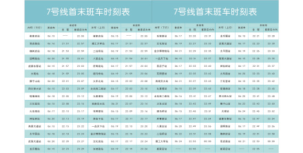 7号线 | 首班车 | 末班车 | 首班车 | 末班车 | ||