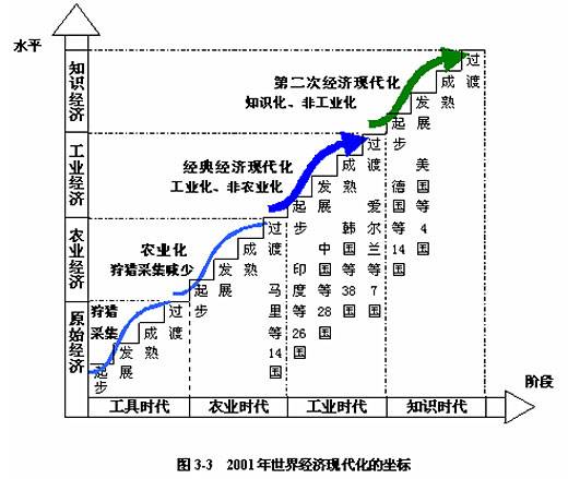 第三个时期,20世纪90年代初“冷战”结束之后,世界经济进入到一个新的发展时期。随着世界范围内“冷战”的结束和科技革命向纵深发展,经济体制改革和经济结构调整成为世界经济发展的潮流,各国经济按照其自身的规律向全球化、集团化的方向发展,建立在知识和信息的生产、分配和使用之上的知识经济初见端倪。