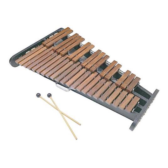 木琴(英语:xylophone)是一种打击乐器,是由一套长方形小木块组成。凭借木块的长短对这些木块按照一定的次序排列。演奏时以两个木制的小槌在木块上敲击,发出声音略似骨头、冰块等的打击声,音质冰凉,有冰冻质感。现代木琴的音域有三个半到四个八度,过去木琴的实际音高比记谱法高八度,自圣——桑以后,为了便于记谱的统一,就改按实际音高记谱。但是木琴需要其他乐器(如钢琴、管弦乐队等)的伴奏才能衬托出其独特的音色,使之更具魅力。木琴产生于14世纪,其多用于独奏原始的木琴产生于亚洲、非洲和南美洲。十五世纪传入欧洲。十九世纪30年代俄罗斯扬琴演奏家库斯科夫旅欧表演木琴独奏。受到蒙德尔松等音乐家的赞赏,从此名声大振。