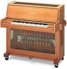 钢片琴外形如小形簧风琴,声源体为金属板条,以类似钢琴的击弦机击奏、有踏板制音器控制音响的长短,和键盘钢条琴相似,但每一钢音条下方附有共鸣管,放大音量,并使音色清晰纯净。