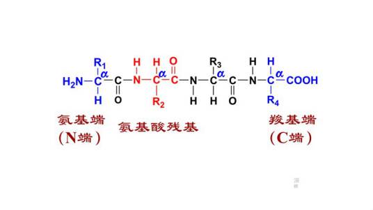 肽链 peptide chain是生物名词,由多个氨基酸脱水缩合形成肽键(化学键)连接而成。两个氨基酸相连为二肽,依此类推还有三肽、四肽……10个以下氨基酸组成的称寡肽(小分子肽),超过十个就是多肽,而超过五十个就被称为蛋白质。大分子蛋白质多是组成氨基酸超过100的长肽链。肽键就是氨基酸的α-羧基与相邻的另一氨基酸的α-氨基脱水缩合的共价键,故肽链两端有自由的α-氨基或α-羧基,分别称为氨基末端或羧基末端。随着组成氨基酸单元的不同,其性质和功能有很大差异。