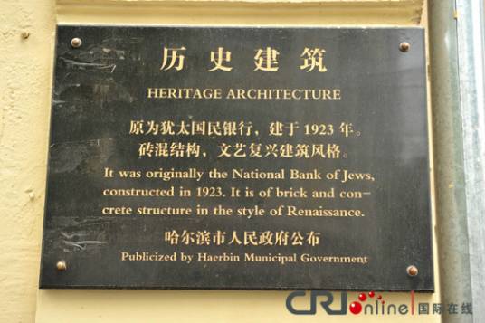 哈尔滨犹太国民银行,它是居住在哈尔滨的犹太人集资创办的。有资料显示,犹太银行于1923年6月3日开业。地址在中国十一道街44号(即今天中央大街59号)。他开业的时候,早已有许多国家的金融机构在哈埠设立。远的不讲,就在它的附近,西十二道街上有美国花旗银行,中央大街上有苏联远东银行等。而且,都是在同一年先后开业,可见竞争之激烈。