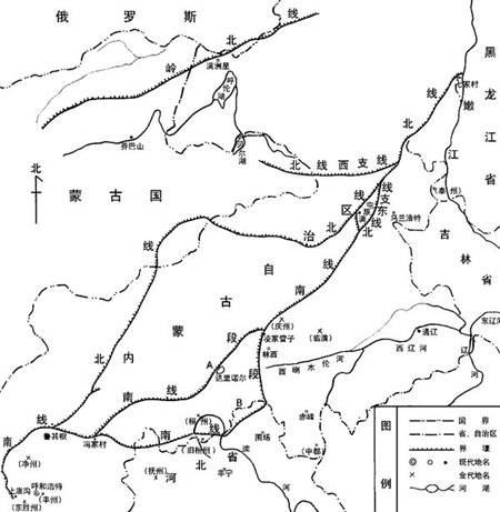 清代光绪年间任黑龙江舆图局总纂的屠寄,应大清会典编撰委员会之约,主修《黑龙江舆图》。在《黑龙江舆图》中,对金界壕的走向、位置,进行了详细标注。从金东北路界壕起点达里带石堡子一直到鹤五河,并把三道长城及复线都标出,将其称为“金源长春边堡”。从舆图标注情况看,当时动用了许多人力、物力。这是首次由国家组织的大规模金界壕调查,对后世影响很大。因为《金史》里没有记载,所以后世研究金界壕时,往往从屠寄的调查结果,把金东北路长城起点定在嫩江右岸的后宜卧奇屯。屠寄写《蒙兀儿史记》时,根据《金史》记载,对金东北路长城的大致分布情况、走向、分段都进行了考证,特别指出了金界壕“加女墙、附堤当在明昌间”。这说明屠寄不仅组织人力对金东北路长城进行了测绘,而且对有关金界壕的历史文献也进行了研究。