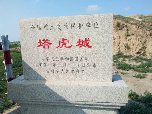塔虎城座落在吉林省前郭尔罗斯蒙古族自治县(以下简称前郭县)县城西北50千米的北上台子村,西北距大安县城(原大賚县城)10千米。1958、1962年,吉林省博物馆对该城作过两次调查,采集到一些文物。