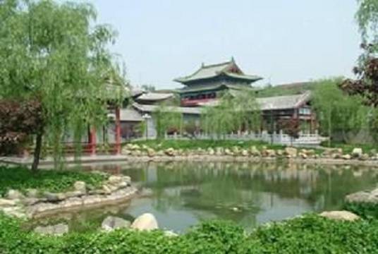 园东南处斜砌一道挡墙,改变下面院落坐落方位。挡墙长约30米、高约2米,设大理石雕花栏杆,中间为暗渠引将泉水形成的“龙诞瀑布”,流入下院中的鱼沼。瀑布两侧有斜梯步入下院。鱼沼中架十字飞梁,为今时仿晋祠著名“鱼沼飞梁”而建,让人不入晋祠而可一睹“鱼沼飞梁”之神采。院西面有厅房三间,西北有小三间亭廊一座,供人小歇。院东南有门通入前面的别院。