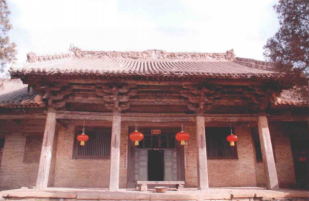 正殿成汤殿是具有确切纪年的宋代建筑,坐北向南,位于院落北部砖砌台基之上,台基高1.55米。成汤殿面阔三间,进深六椽,单檐悬山顶,屋顶布灰筒瓦,斗拱五铺作,明间门已被毁,次间施破直棂窗,方形抹角青石柱,柱头卷杀明显,方形柱础与地面齐平。