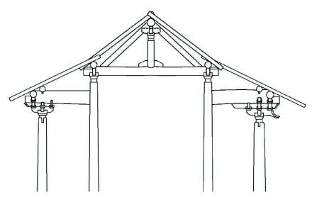 水陆殿建筑面积124.8平方米,原有柱子12根,前、后檐墙内立有檐柱(含角柱)各四根,柱径均为0.45米;东西山墙内立有山檐柱各两根,柱径均为0.34米。后由于梁架变形,在当心间两架四椽栿下分别加立柱子两根 。