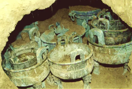 2003年1月19日,杨家村二组村民王宁贤、王明锁、王拉田、王勤宁、张勤辉五人在挖土时发现了青铜器窖藏。