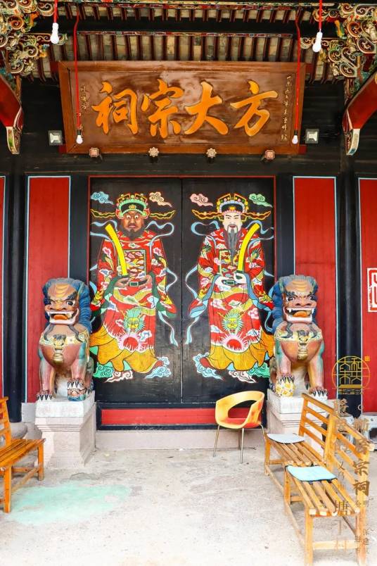 塘下方大宗祠门前两侧置放石狮一对,门上悬挂“方大宗祠”木匾一块。