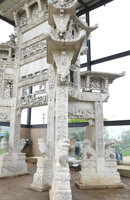 余家碑坊几平无所不雕,中国古代石雕工艺手法,悉数使用。雕刻层次丰富,对比效果强烈,内容宽泛,有人物故事、花卉动物,种类达百种。