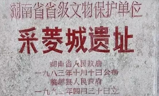 1981~1985年,先后数次考古调查发掘采菱城遗址,城址为长方形,城垣南北长约830米,东西宽约600米,城垣为黄色粘土夯筑,四周有护城河,是湖南省保存较好的古城址之一。在城内采集到大量的夹砂红陶、夹砂灰陶和泥质红陶、泥质灰陶陶片,器物有绳纹筒瓦、绳纹陶鬲,经鉴定年代均属东周时期,与清光绪《桃源县志》所载年代相吻合。遗址墓葬区墓葬分布密集。南北长约500米,东西宽约100米的范围内有大小古墓数百座,1984年9月,发掘70座。采菱城遗址保存完好,文化内涵丰富,对研究沅水中下游楚文化有较高价值。