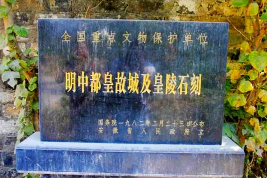 1982年2月23日,明中都皇故城及皇陵石刻中华人民共和国国务院公布为第二批全国重点文物保护单位 。