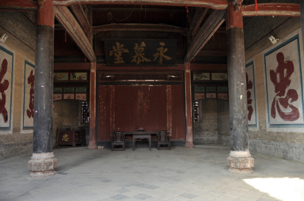 永慕堂坐北向南 ,三进三栋两大天井,砖木结构,面阔19.7米,进深约62米,外观巍峨高大。大门上方悬挂“翰林第”牌匾,左侧门横额写有“入则孝”,右侧门横额是“出则第”。从前门廊到寝堂祖宗龛,无论砖、石、木构件,重工装饰。门廊以上置如意斗拱托起的飞檐翘角牌楼,正殿为五架梁,抬梁式构架;檐步置四角亭式抱厦,后堂亦有高耸的斗拱飞檐牌楼。抱鼓、蹲狮,门簪、柱础,皆用红石,17对整条红砂石柱托起梁架,柱身镌楹联。