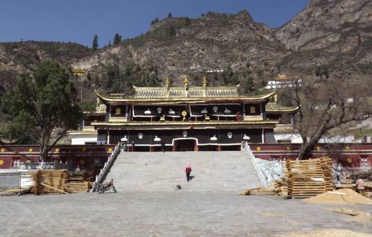 大经堂是显宗学院,内有房屋86间,可以同时容纳500余人诵经;供奉的佛像有:文殊菩萨、佛祖、宗喀巴、宗喀巴、嘉色佛、章嘉佛、弥勒佛。