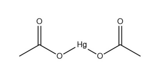 溶解性:溶于二氯甲烷、乙酸、水(在水中会慢慢水解为HgO),微溶于醇,不溶于苯、己烷等