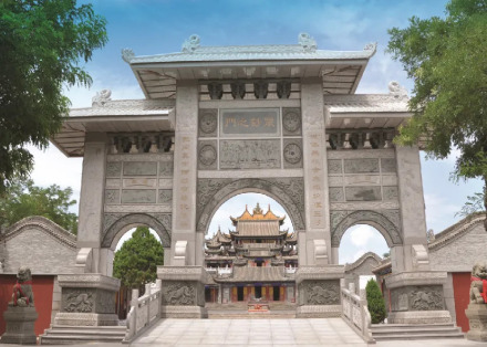 石牌楼是三进四柱式,为玉皇阁的山门。