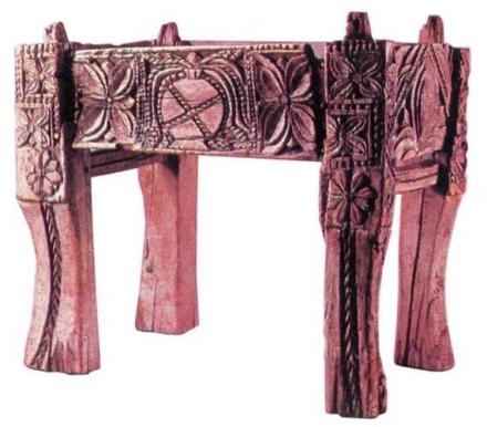 尼雅房屋建筑流行塔里木盆地常见的木骨泥墙结构。建筑构件工艺考究,有汉式的斗拱、雕花窗格,还有中亚犍陀罗风格的木托架、雕花门框等。一些木制家具工艺精细,显示当地木器制造的发达。