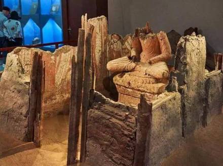 2007年,达玛沟佛寺遗址建成遗址博物馆,并于同年8月20日对外开放,馆内陈列有小佛寺遗址、毗萨满天王壁画、千手观音、三弦直头琵琶、裸体伎乐天人像等108件文物和壁画。