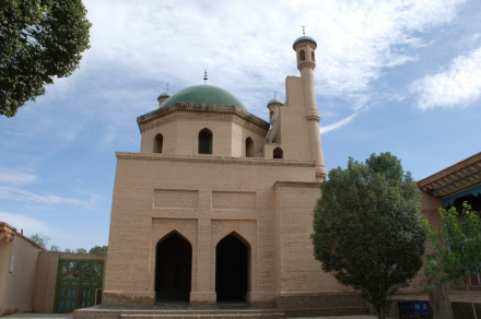 纵横8行的64根六棱形大柱,饰似彩雕绘画,支撑起由102块方格画图案组成的天花板,华丽壮观,值得一提的是小清真寺之北有一处声威显赫的“宗教法庭”,它是政教合一的产物,也是新疆保留的为数不多的伊斯兰教司法机构遗址。