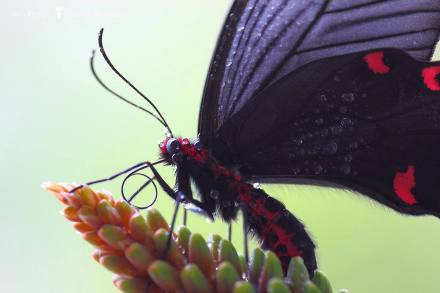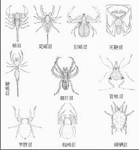 节肢动物(Arthropoda)是身体分节、附肢也分节的动物,是动物界中种类最多、数量最大、分布最广的一类,常见的鲎、蜘蛛、蝎子、水蚤、虾、蟹、蜈蚣、蝗 虫、蝴蝶等都属于节肢动物。已知的节肢动物约有100多万种,占动物总数的80%以上。种内的个体数量也很大,例如一群白蚁可有几万到几十万只, 迁飞的蝗群以百万头计数,海洋中的一些浮游甲壳类多到不可计数。另外, 它们的分布也极广,海水、淡水、地面、土壤以及动、植物体内、外都是它 们生存的场所。特别是昆虫还侵入空中生活,这在无脊椎动物中是仅有的一类。一些昆虫甚至组成社会生活,群体中的个体有严格的劳动分工,这也是节肢动物高度进化的标志之一。身体两侧对称。由1列体节构成,异律分节,可分为头、胸、腹3部 ,或头部与胸部愈合为头胸部,或胸部与腹部愈合为躯干部,每一体节上有一对分节的附肢。附肢有双枝型和单枝型两类。节肢动物的重要特征是体外覆盖着几丁质的外骨骼,又称表皮或角质层。在相邻体节之间的关节膜上,角质层非常薄,易于屈折活动。附肢的关节也可活动。节肢动物在生长过程中要定期蜕皮。前后两次蜕皮之间的阶段叫做龄期。循环系统为开管式。水生种类的呼吸器官为鳃或书鳃,陆生的为气管或书肺或两者兼有。原始的节肢动物靠体表交换气体。神经系统为集中型链状神经系统。有触觉、味觉、嗅觉、听觉、平衡和视觉等感觉器官。眼有单眼和复眼两种。复眼由个眼组成,能感知外界物体的运动和形状,能适应光线强弱和辨别颜色。多数雌雄异体。陆生种类常行体内受精,而水生种类有很多为体外受精。一般是卵生,也有卵胎生;此外,还有孤雌生殖、幼体生殖和多胚生殖等形式。生活环境极其广泛。