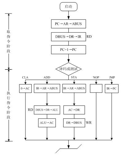 (2)ALU响应该控制信号,将累加寄存器AC的内容全部清零,从而执行了CLA指令。